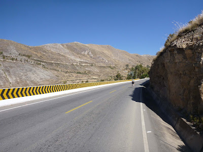 The road winds from 9,600 feet in Tarma to 13,100 at its highest point, and there are literally no points where it levels out or goes down. None.So of course you have to ride your bicycle up. Duh.
